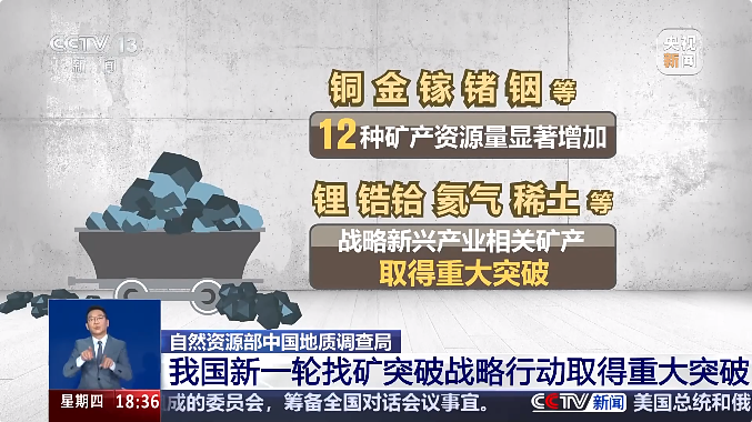 中國工程院院士唐菊興介紹,新一輪找礦突破行動,36個礦種采取一礦一策。既有石油、天然氣、煤炭、鐵、錳等大宗礦產,也有鋰、稀土等戰略新興礦產。