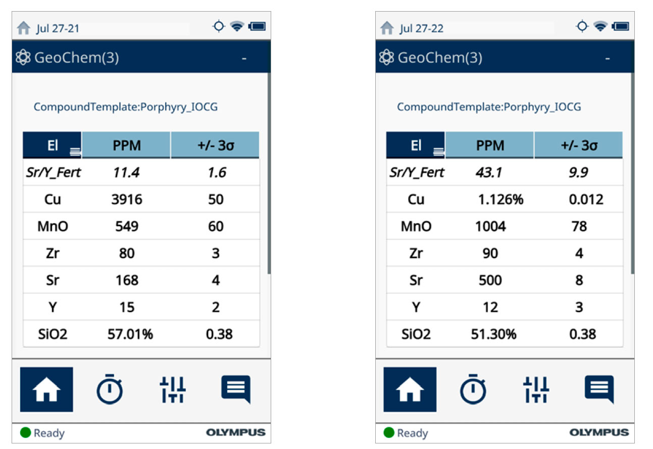 在實驗室中測量的鍶(Sr)、釔(Y)、氧化錳(MnO)、二氧化硅(SiO2)和鋯(Zr)的不同比例組合可用于有效區分斑巖銅環境中的成礦特性和妨礙成礦的侵入體。最近,澳大利亞塔斯馬尼亞大學礦床和地球科學中心(CODES)和英國萊斯特大學地理、地質和環境學院都對手持式分析儀在現場檢測制備好和未制備樣品以幫助勘探人員評估斑巖可開采性的能力進行了研究。