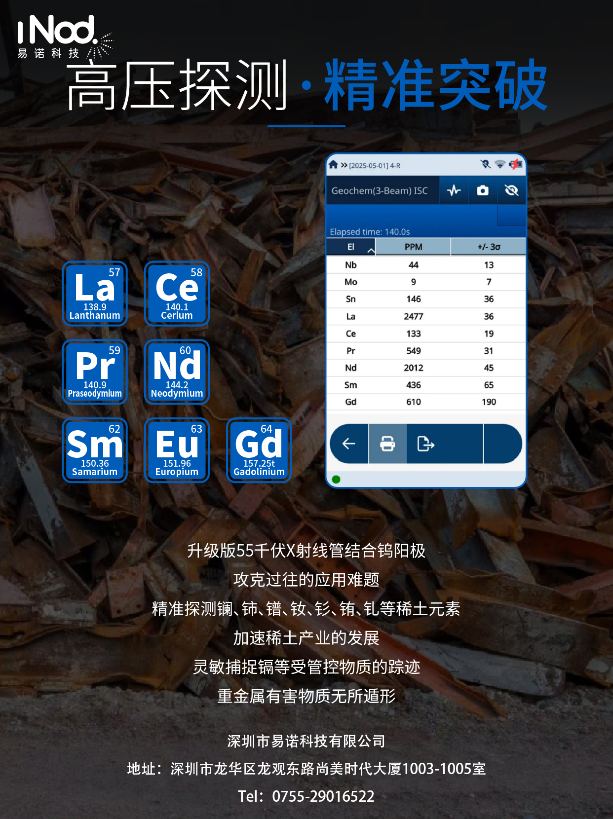 ? 可檢測多種稀土元素:能夠檢測鑭(La)、鈰(Ce)、鐠(Pr)、釹(Nd)、鈧(Sc)、釔(Y)等多種稀土元素,以及釷(Th)、鈾(U)、銫(Cs)和鋇(Ba)等與稀土元素相近的元素,可覆蓋稀土元素檢測的多種需求。
