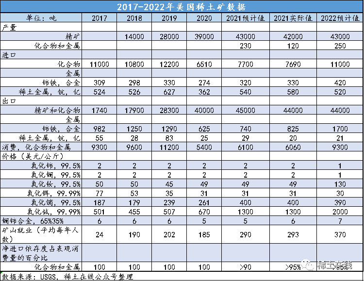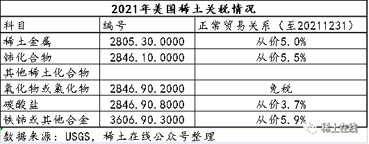 進口化合物11000噸,增加43%,進口金屬合計940噸。進口稀土化合物及金屬估算值為2.0億美元,比2020年的1.6億美元大幅增加25%。(大量稀土作為永磁體用在制成品中進口,未計算在內)