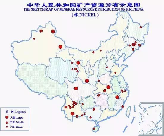 中國(guó)鎳礦資源不能滿足需要。總保有儲(chǔ)量鎳784萬(wàn)噸,居世界第9位。鎳礦產(chǎn)地有近100處,分布于18個(gè)省(區(qū))。