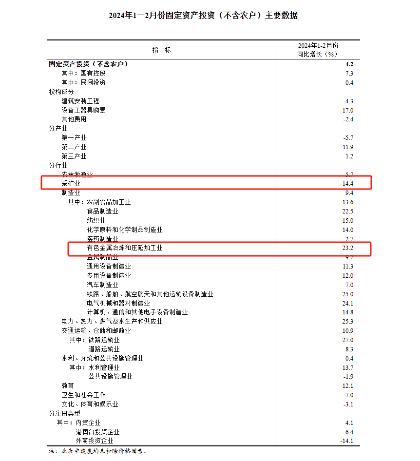 第二產(chǎn)業(yè)工業(yè)投資同比增長(zhǎng)11.9%。其中,采礦業(yè)投資增長(zhǎng)14.4%。