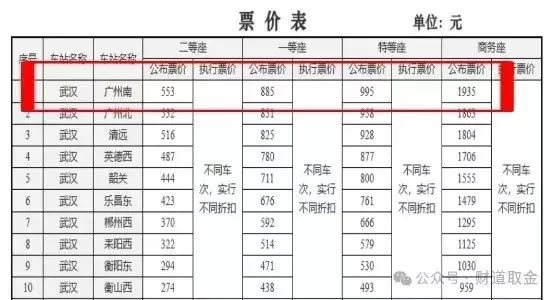 以武漢站至廣州南站的高鐵票價為例,二等座現價463.5元,一等座現價738.5元,商務座1458.5元。調價后的價格分別為:553元,885元,1935元,漲幅達19.31%、19.81%、32.67%。
