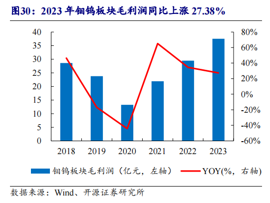 鉬鎢板塊方面,開源證券研報(bào)顯示,去年,洛陽鉬業(yè)全年鉬鎢產(chǎn)量合計(jì)2.36萬噸,營收為86.11億元,同比增長23.63%,毛利為37.51億元,創(chuàng)歷史最高紀(jì)錄。