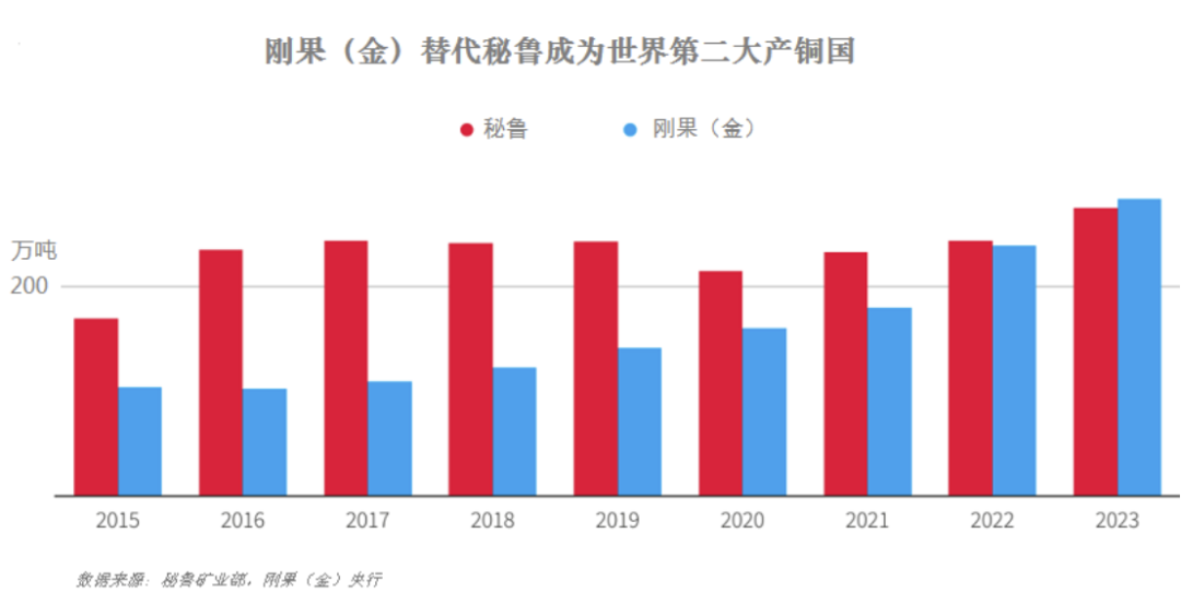 近年來(lái),非洲加丹加銅鈷礦帶成為全球銅礦矚目的焦點(diǎn),尤其剛果(金),是近十年全球銅礦產(chǎn)量增長(zhǎng)最快的國(guó)家,2023年已超過(guò)秘魯成為全球第二大產(chǎn)銅國(guó),加之地處非洲中部,剛果(金)也有了“非洲心臟”之稱(chēng)。