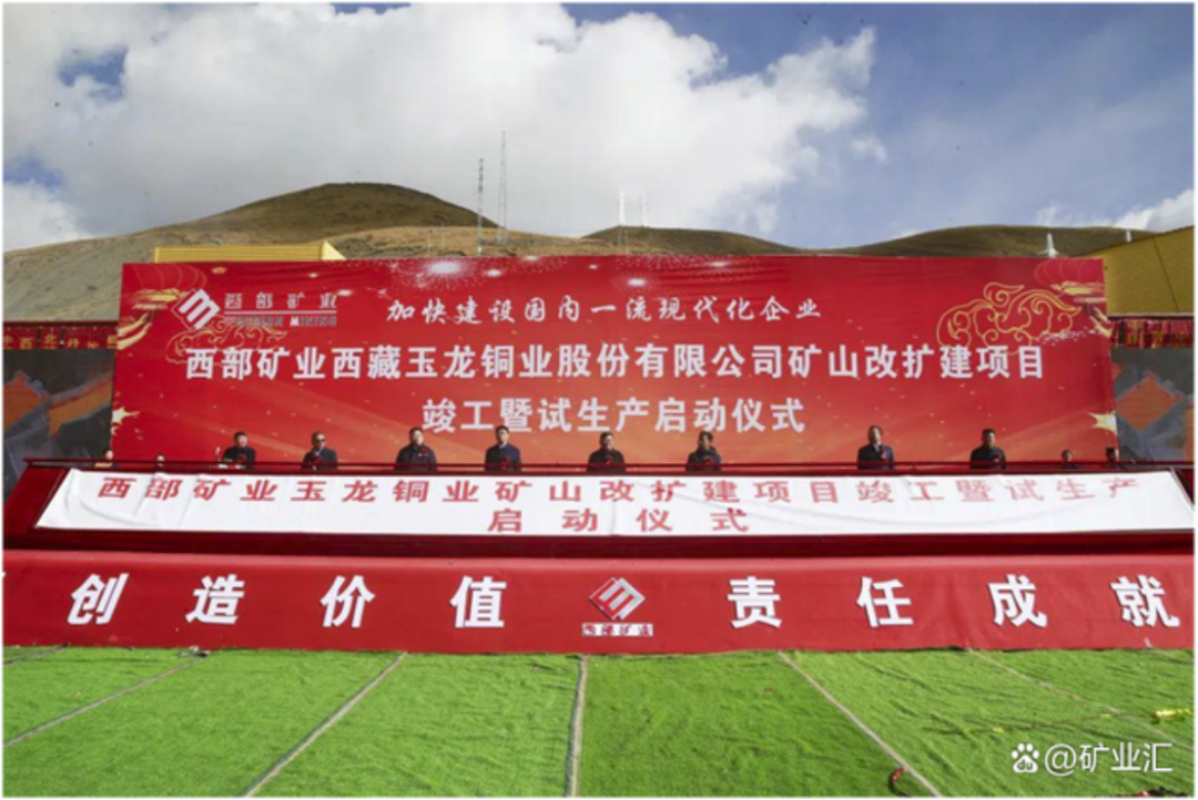玉龍銅礦位于西藏昌都地區金沙江畔,屬特大型斑巖和接觸交代混合型銅礦床,礦區海拔高度4560-5118米,銅金屬量達607萬噸,還擁有約40萬噸鉬金屬量,大量的金、銀等金屬儲備。西部礦業控股的西藏玉龍銅業股有限公司負責玉龍銅礦的開發。2023年底,玉龍銅礦改擴建項目竣工,并開始試生產,玉龍銅礦礦石處理能力達到2280萬噸/年,礦產銅由12萬噸增加至15萬。