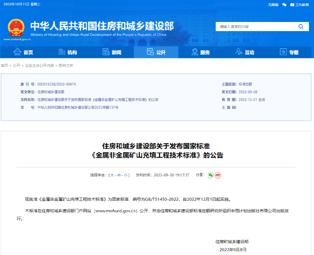 重磅來襲!我國首次發布金屬非金屬礦石填充工程技術標準